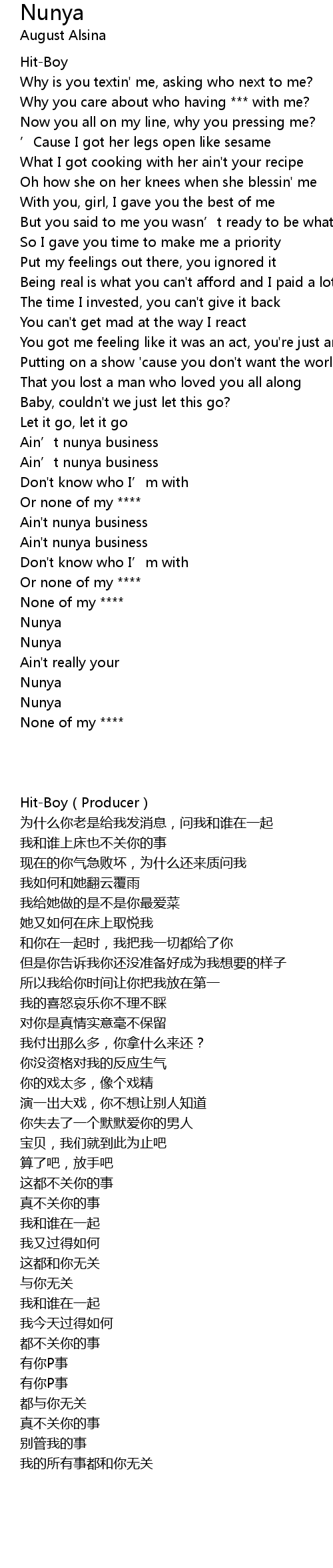 | 歌曲 | Nunya |