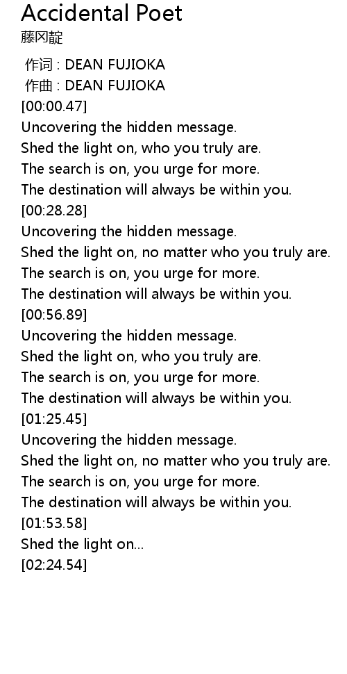 | [00:57.82] | Uncovering the hidden message. |