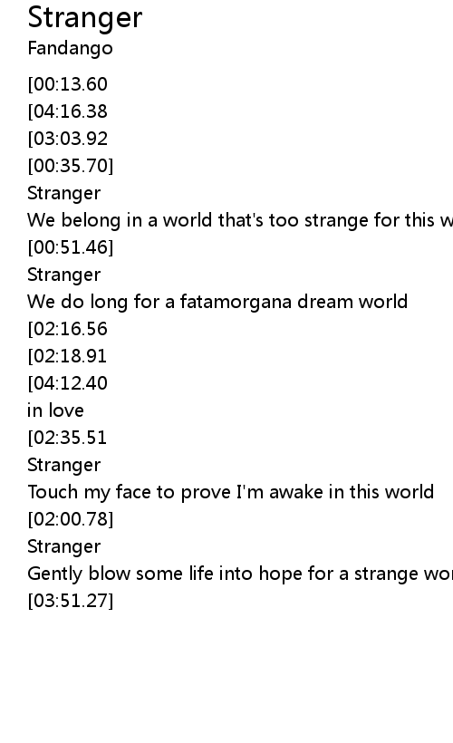 | [00:42.35] | We belong in a world that's too strange for this world |
