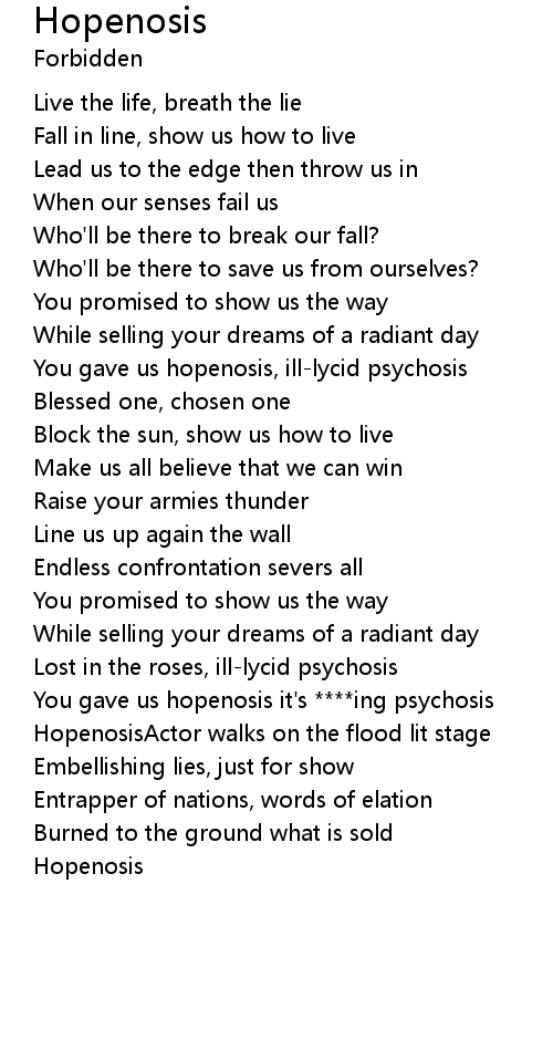 You gave us hopenosis, ill-lycid psychosis |