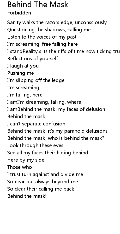 Behind the mask, it's my paranoid delusions |