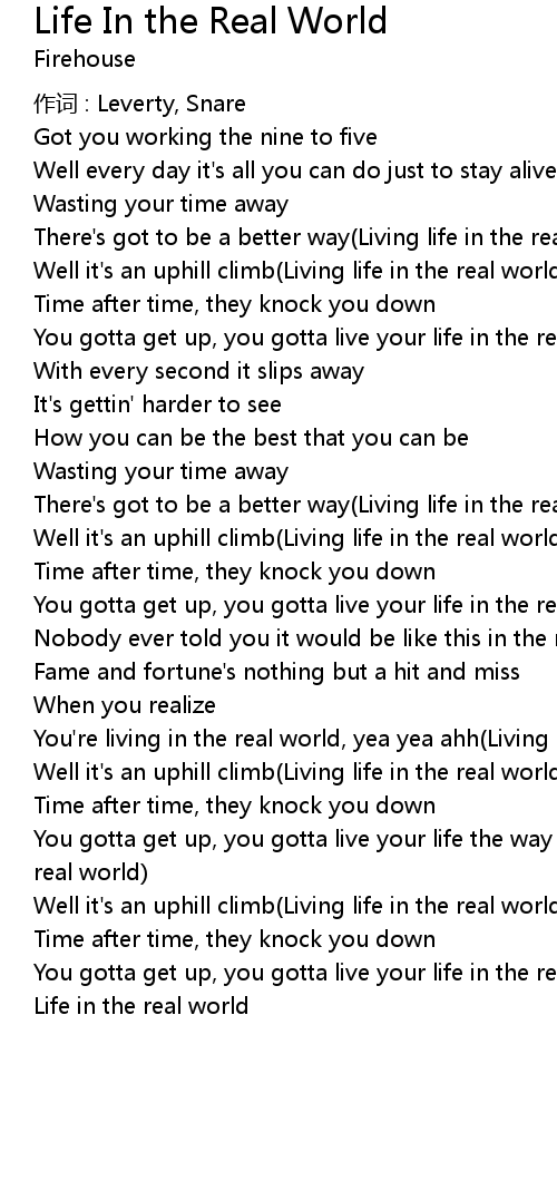 | You're living in the real world, yea yea ahh(Living life in the real world) | |