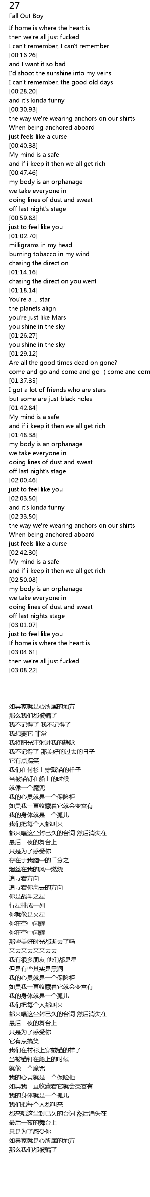 | [03:04.28] | If home is where the heart is |
