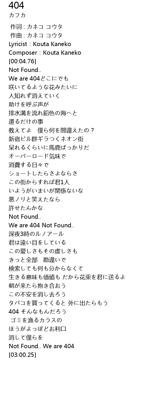 | [00:01.38] | Lyricist: Kouta Kaneko |