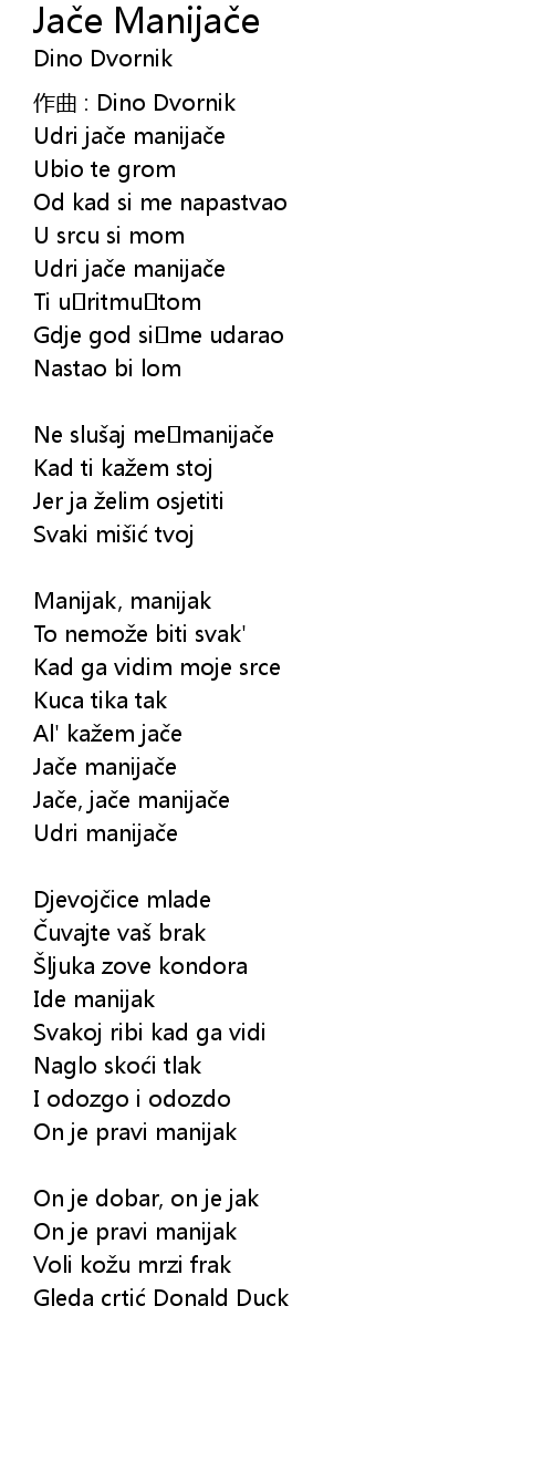 | 歌曲 | Jače Manijače |