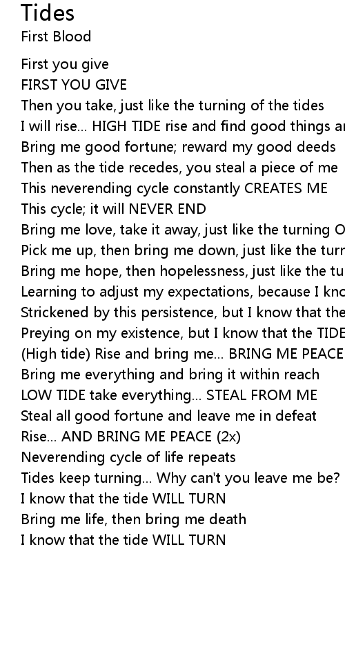 Bring me love, take it away, just like the turning OF THE TIDES |
