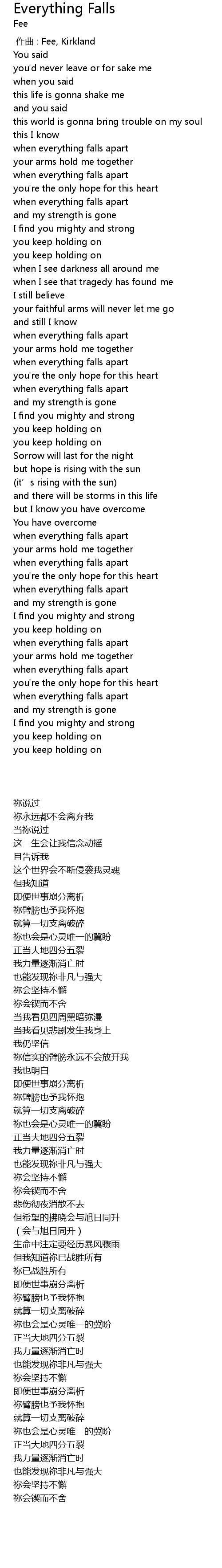 | 歌曲 | Everything Falls |