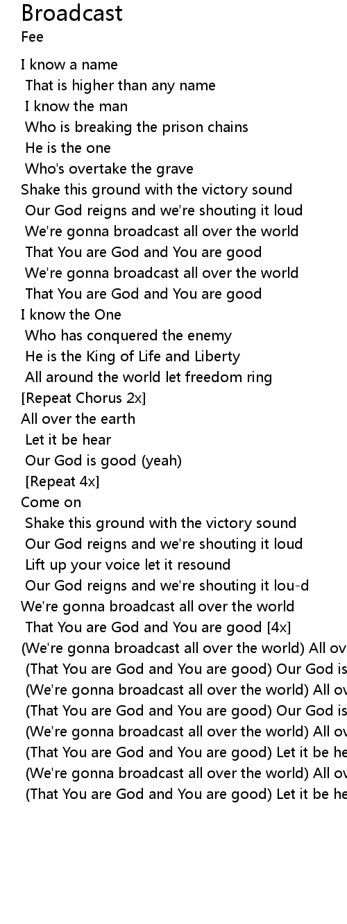 | (We're gonna broadcast all over the world) All over the earth let it be heard | |