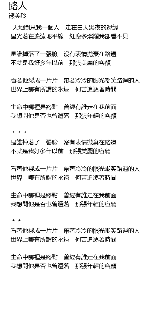 | 是誰掉落了一張臉 沒有表情拋棄在路邊 | |