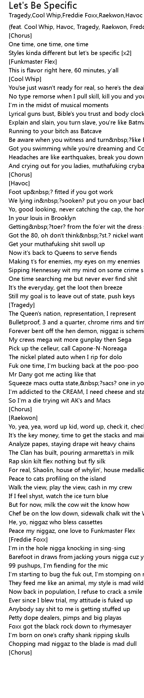(feat. Cool Whip, Havoc, Tragedy, Raekwon, Freddie Foxxx) |