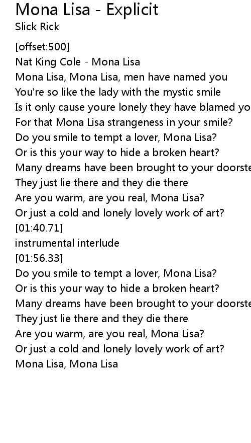 Are you warm, are you real, Mona Lisa? |