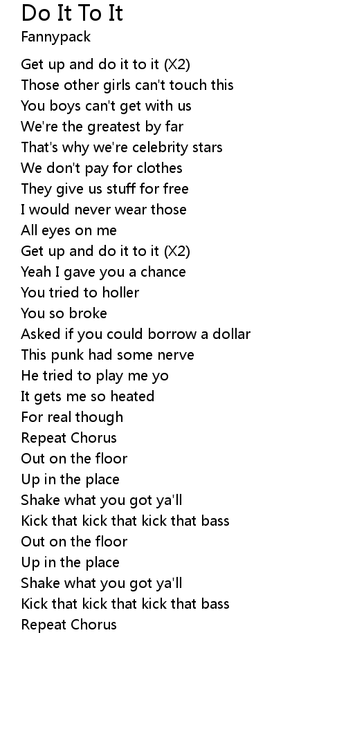 Get up and do it to it (X2) |