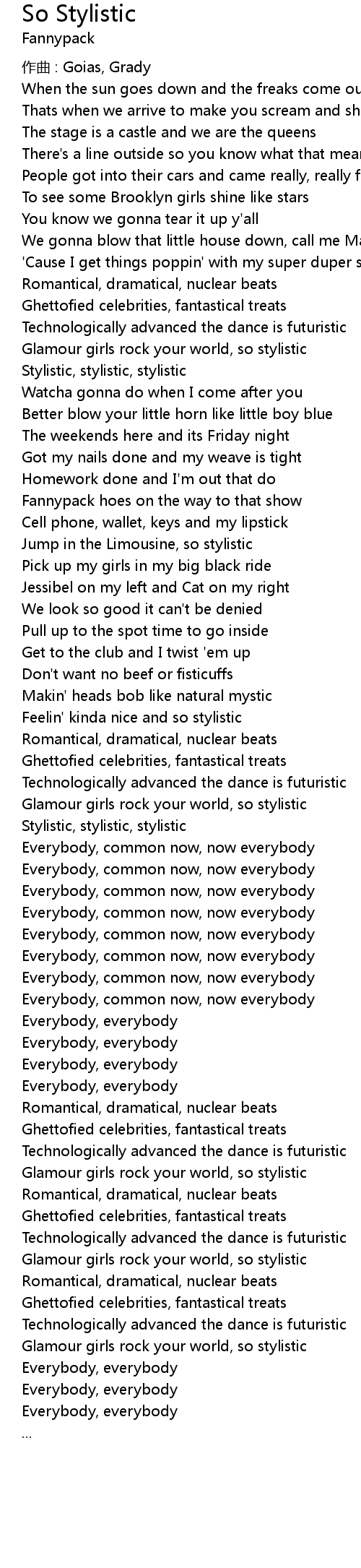 | 歌曲 | So Stylistic |