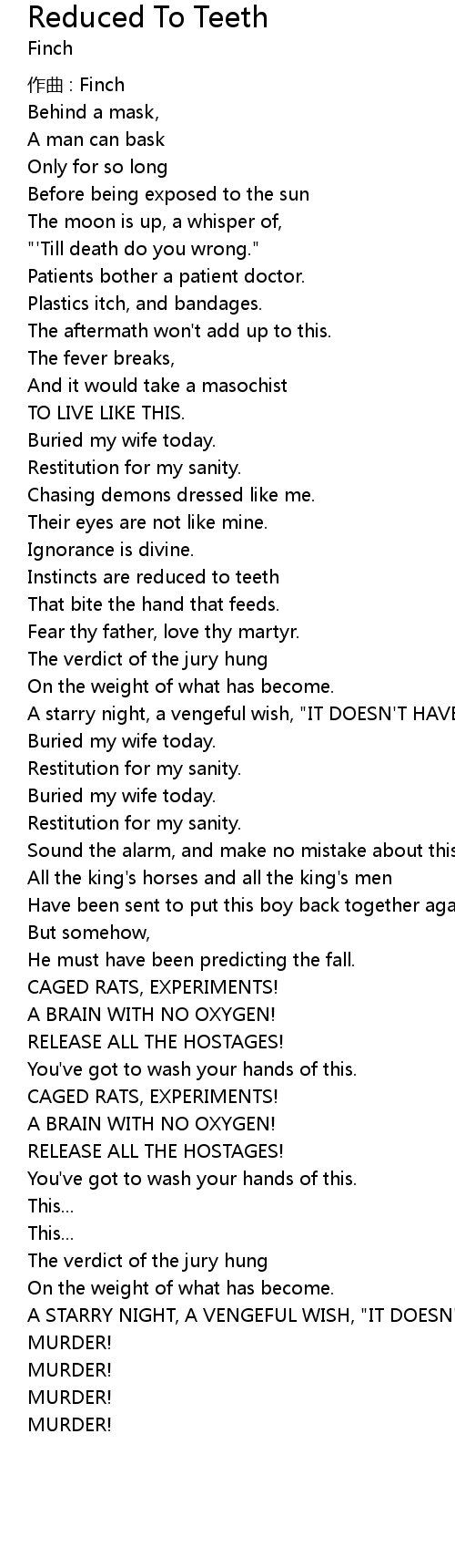 | 歌曲 | Reduced To Teeth |