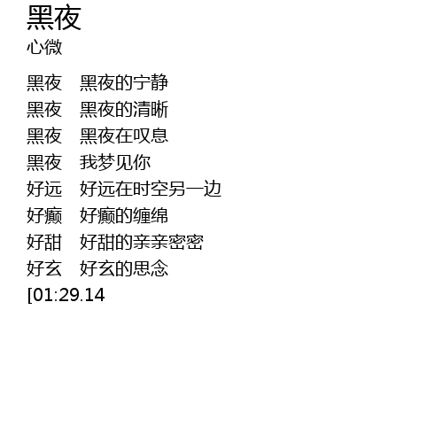 | [00:25.80] | hēi yè hēi yè de qīng xī |