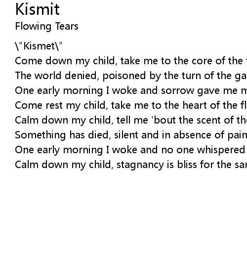 | Calm down my child, tell me 'bout the scent of the rain | |