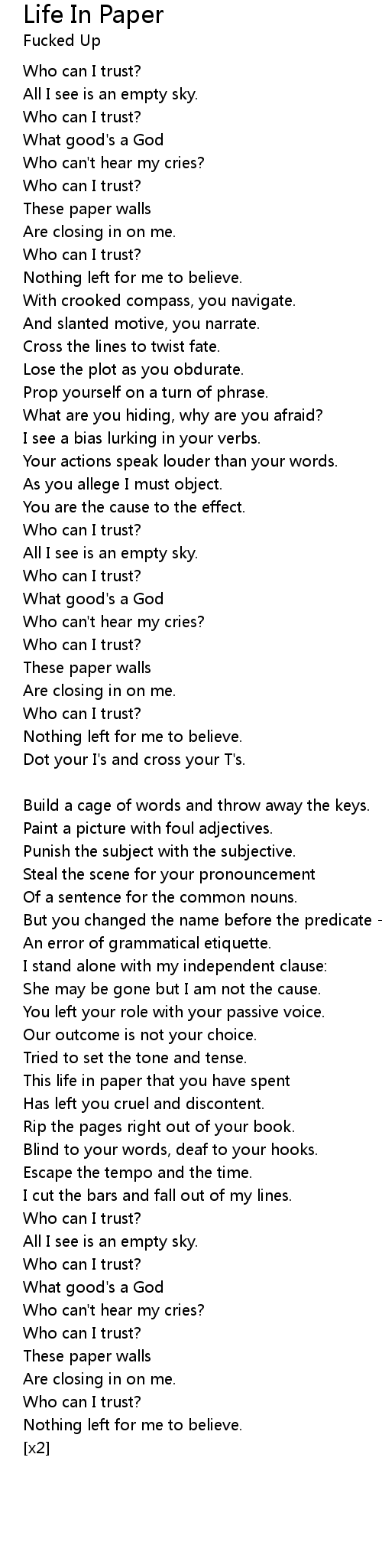Life In Paper 歌词