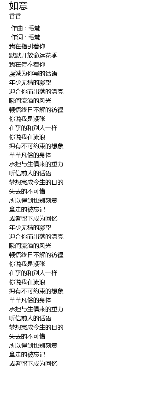 | 歌曲 | 如意 |