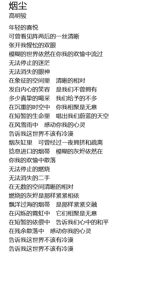 | [02:23.40] | 捻息进口的烟蒂 模糊的灰烬依然在 |