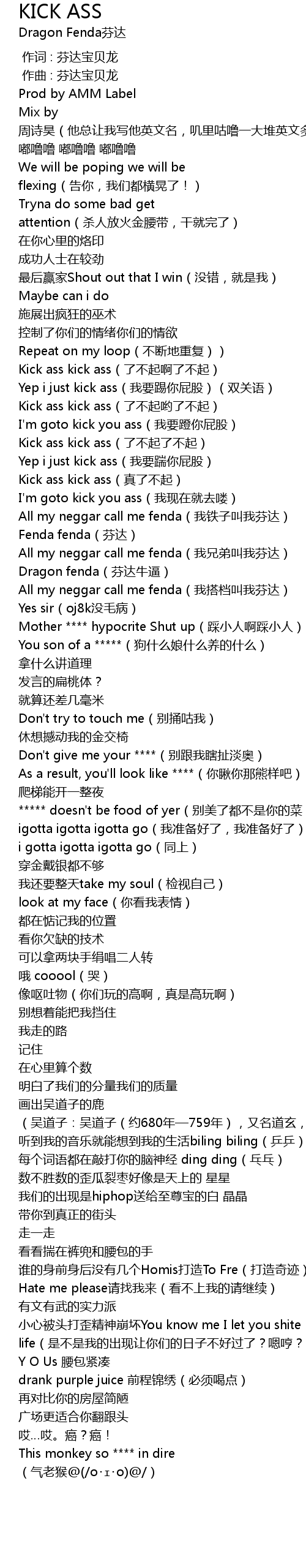 | [00:35.945] | Kick ass kick ass liao bu qi a liao bu qi |