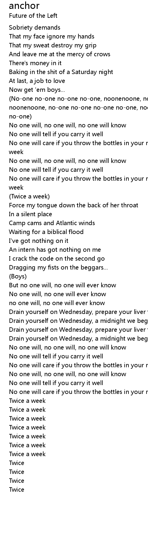 (No-one no-one no-one no-one, noonenoone, no-one no-one no-one no-one, noonenoone, no-one no-one no-one no-one, noonenoone, no-one no-one no-one no-one)