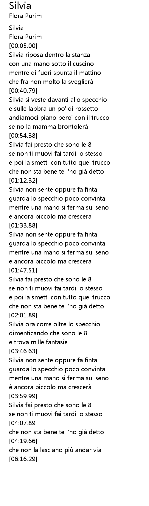 | [03:33.64] | Silvia ora corre oltre lo specchio |