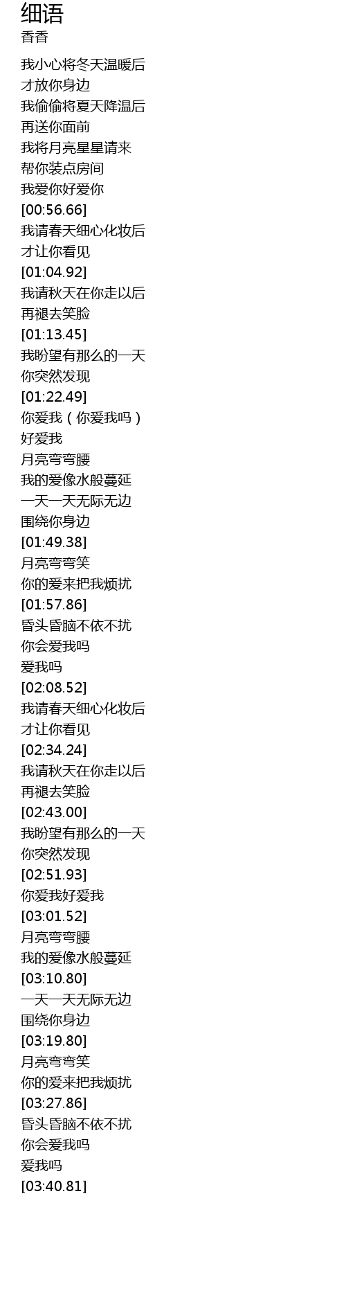| [03:33.37] | 你会爱我吗 |