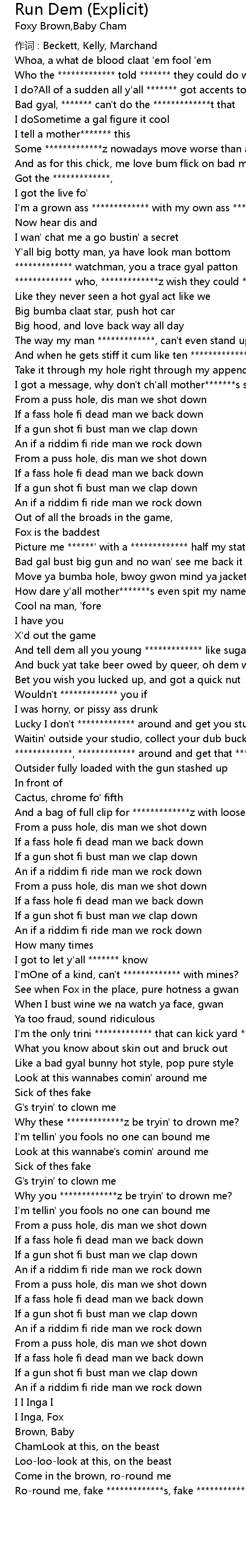 | 歌手 | Foxy Brown |