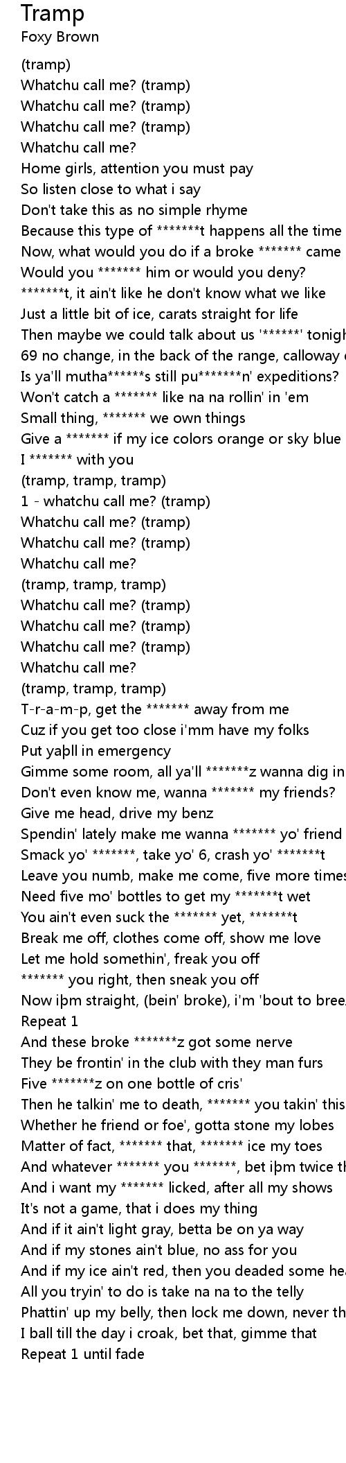 | 1 whatchu call me? tramp | |