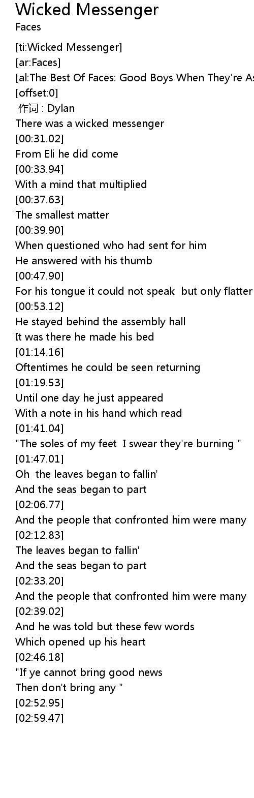 | [00:29.22] | There was a wicked messenger |