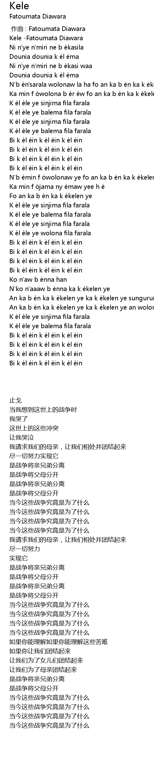 | [00:00.00] | Kele -Fatoumata Diawara |