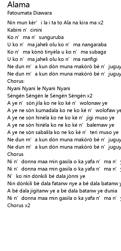 | Ne dun m' a kun dò n muna makò rò bè n' juguya sa, Ala aye | |