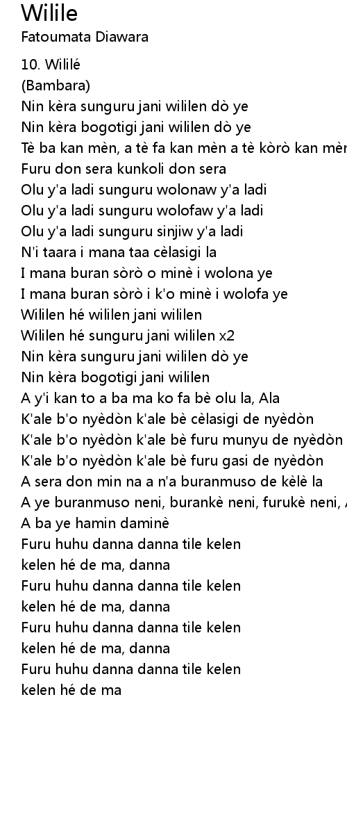 | Nin ke ra sunguru jani wililen do ye | |
