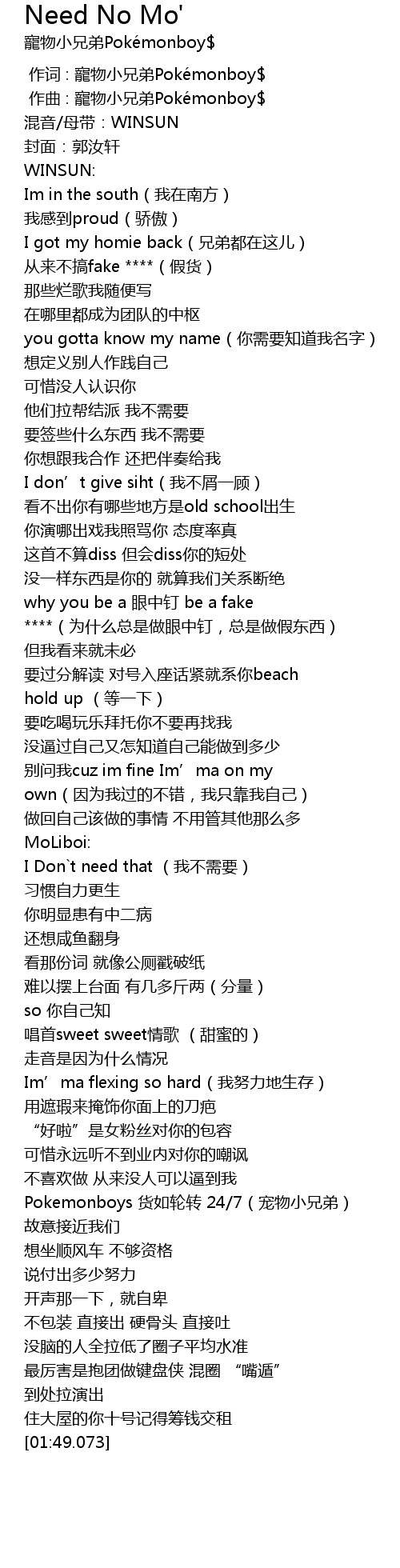 | [00:00.000] | 作词 : 寵物小兄弟Pokémonboy$ |