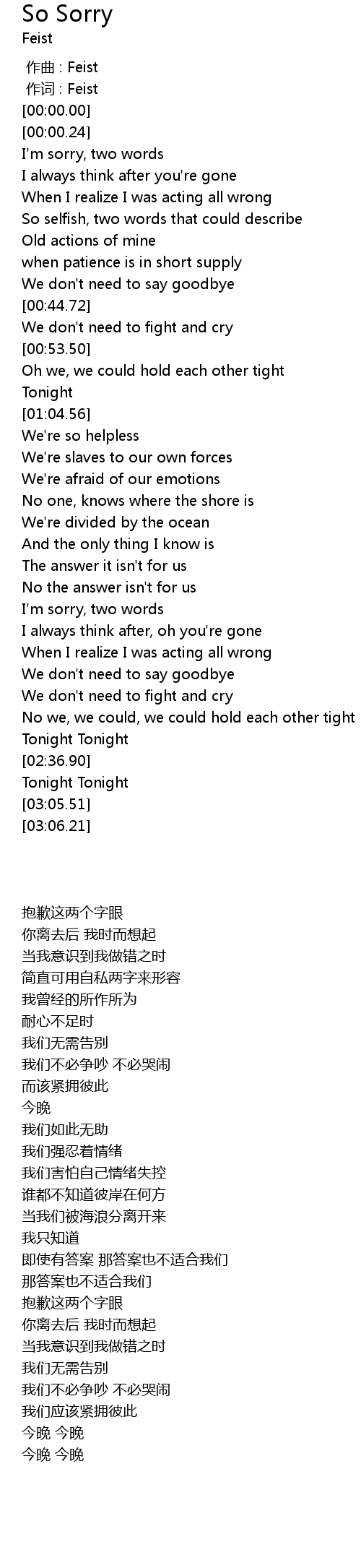 | [00:00.00] | zuò cí : Feist |