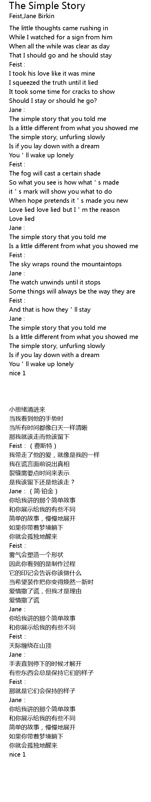 | 歌曲 | The Simple Story |