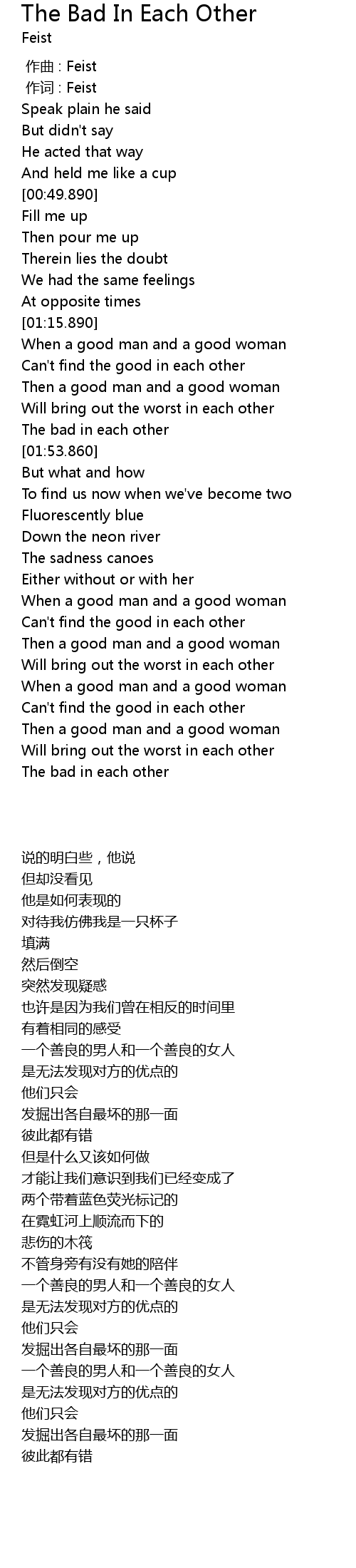 | [02:55.950] | 一个善良的男人和一个善良的女人 |