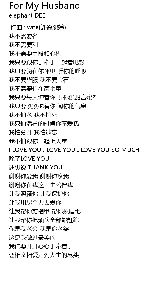 | 歌曲 | For My Husband |