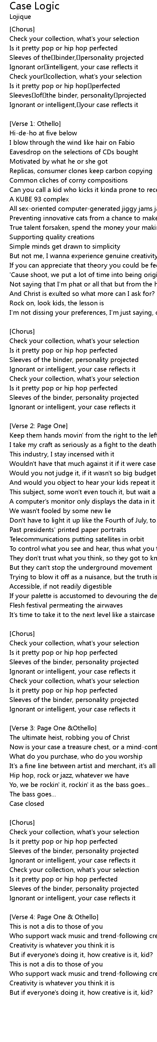 | 歌曲 | Case Logic |