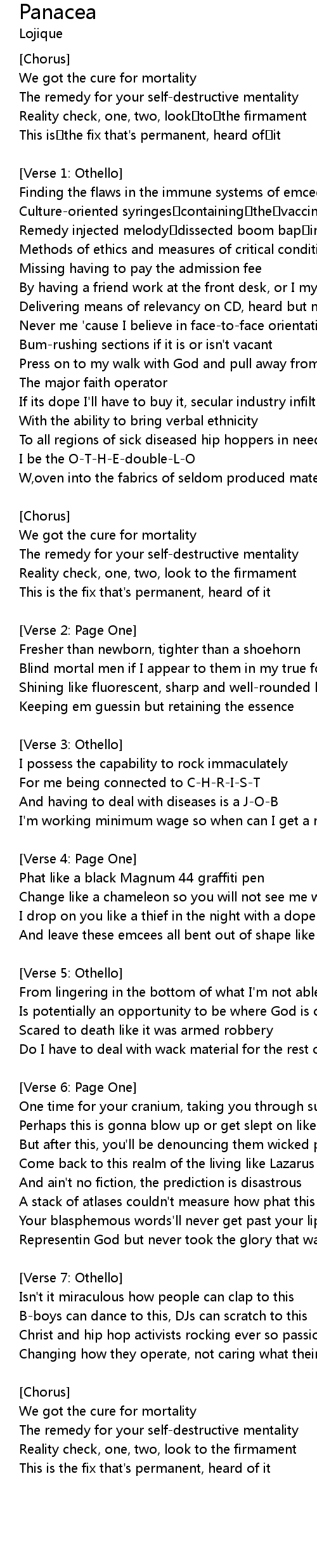 | We got the cure for mortality | |