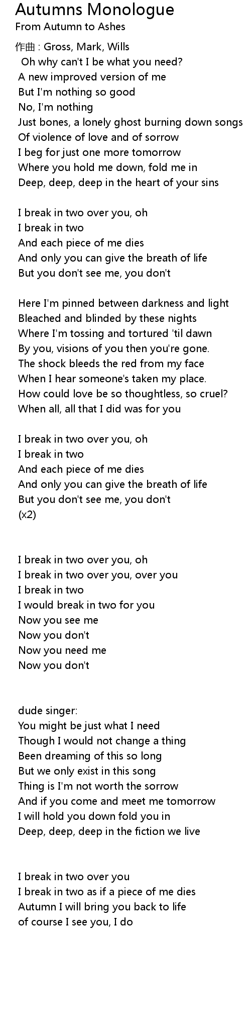| 歌曲 | Autumns Monologue |