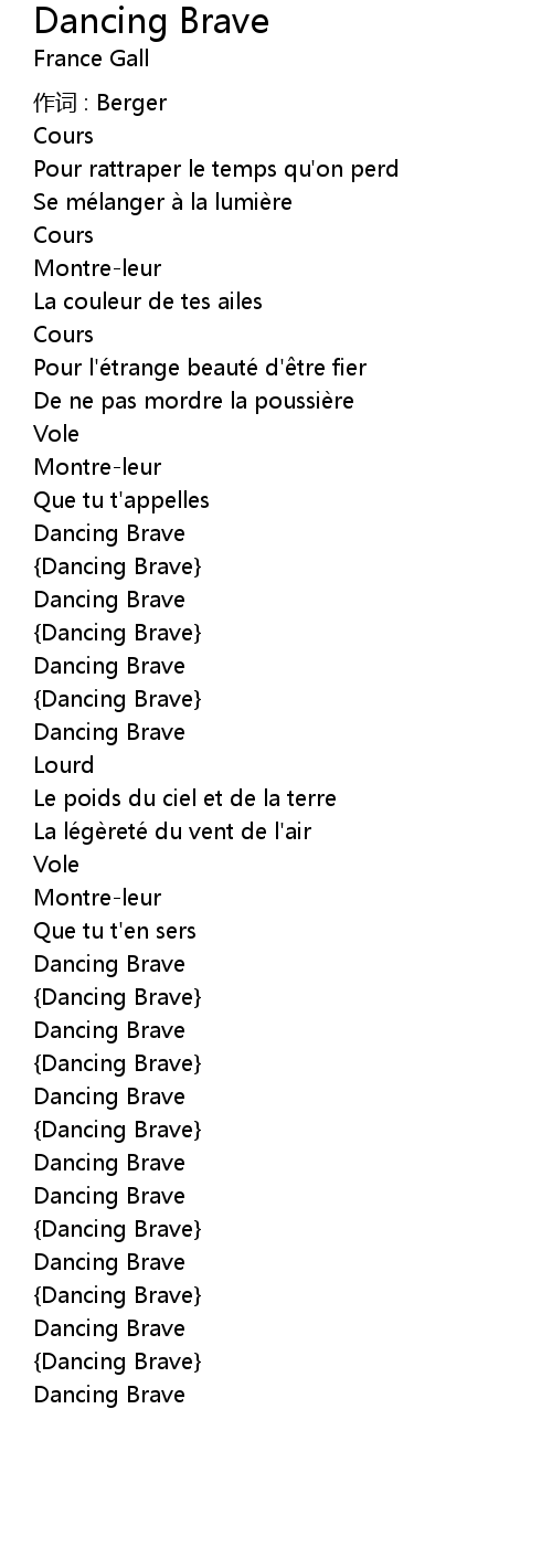 | 歌曲 | Dancing Brave |