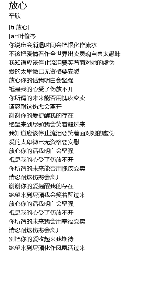 | [03:01.59] | 祗是我的心受了伤放不开 |