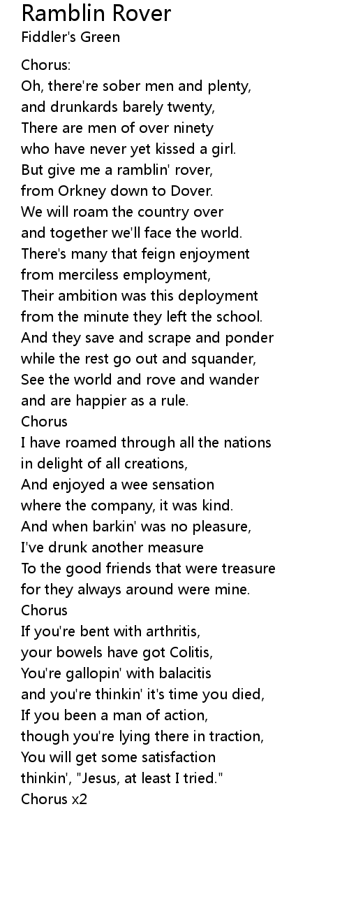 But give me a ramblin' rover,