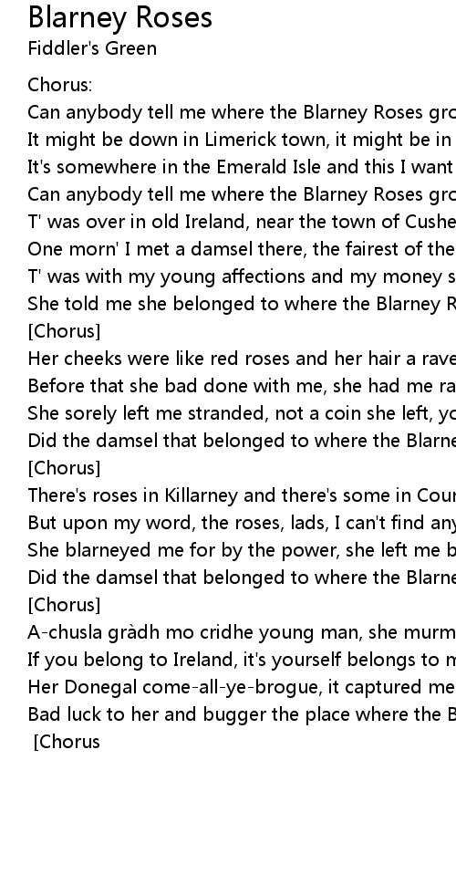 | She told me she belonged to where the Blarney Roses grow | |