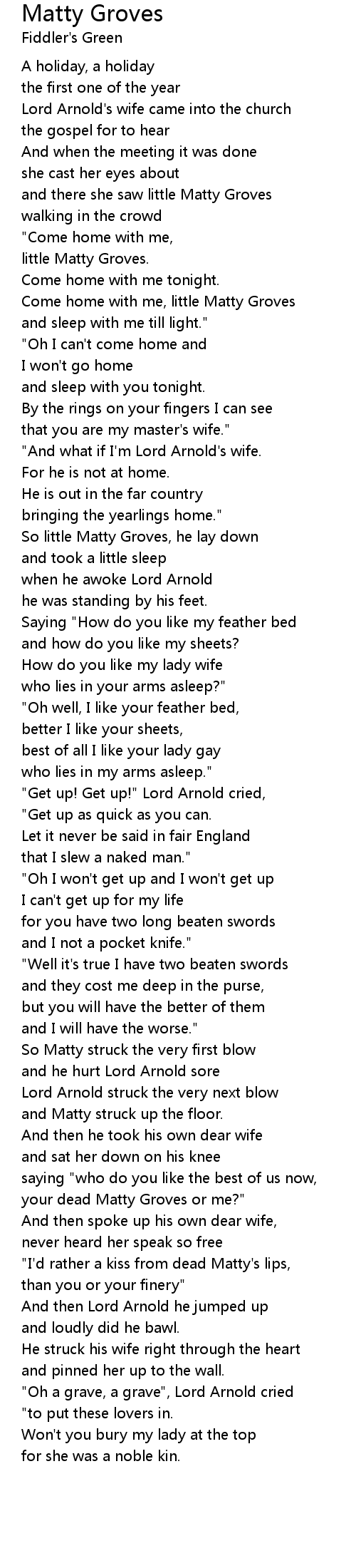 and there she saw little Matty Groves |