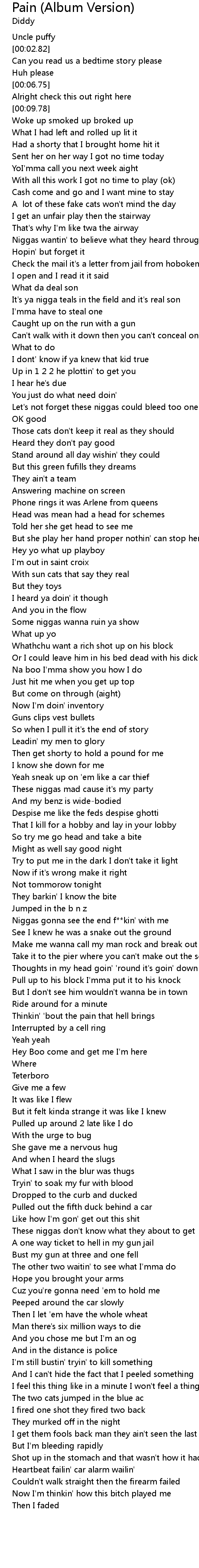| [00:58.69] | Let's not forget these niggas could bleed too one |