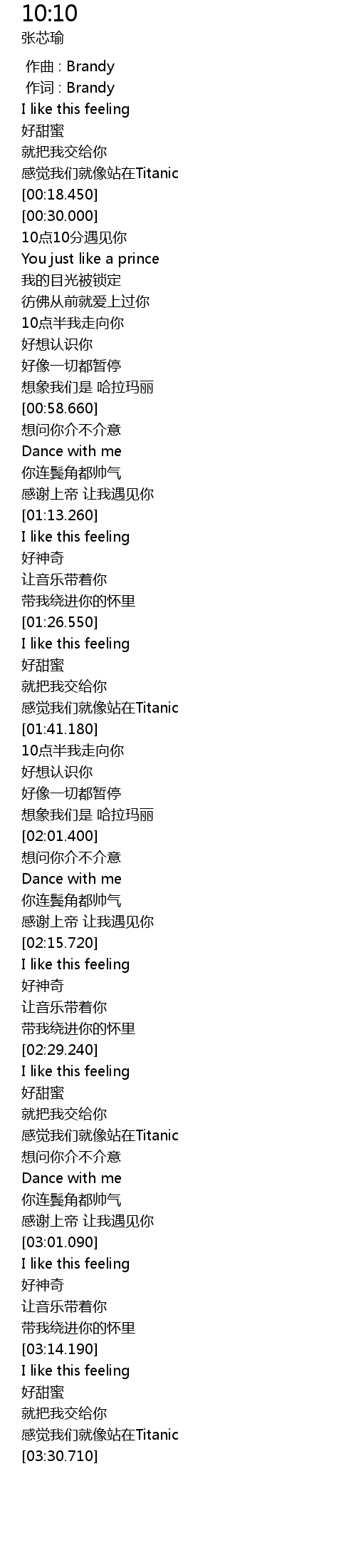 | [00:30.870] | 10 diǎn 10 fēn yù jiàn nǐ |
