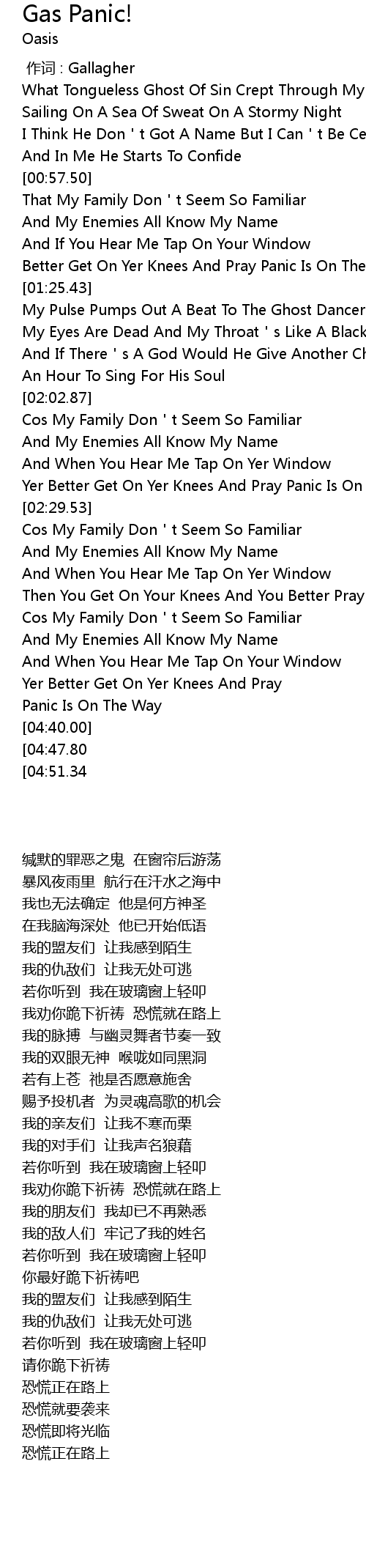 | [01:18.95] | Better Get On Yer Knees And Pray Panic Is On The Way |