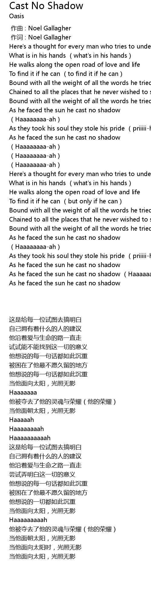 | [00:00.00] | 作曲 : Noel Gallagher |